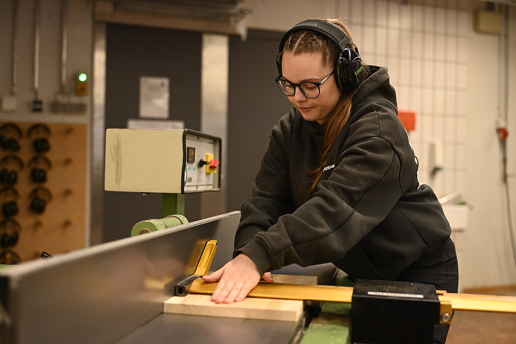 In unseren Werkstätten werden im Berufsgrundschuljahr die grundlegenden Verbindungen des Schreinerhandwerks, wie Zinken und Zapfen vermittelt. Dazu gehört schon im BGJ das Arbeiten an den Maschinen im Maschinenraum. Hinzu kommt das Konstruieren mit CAD-Software und das Programmieren und Bedienen des CNC-Bearbeitungszentrums. Überzeuge dich selbst von der Vielfalt unseres Handwerks und probiere einfach aus, was der Schreiner / die Schreinerin alles macht.